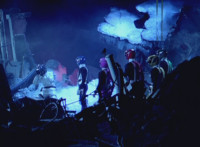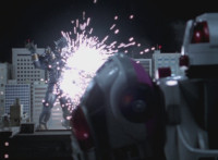 Lasers and enhanced explosions added to shots 2-4; transitions out. |