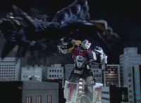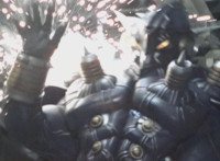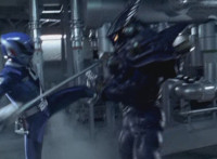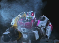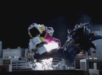 Delta Squad Megazord recovers, Giganis approaches, and goes to strike, it's blocked, the Megazord sparkily punching him a few times, until he staggers back. |
