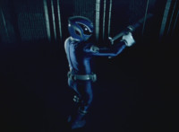 Cuts follow-up of Blue with smoking weapon aimed forth. |