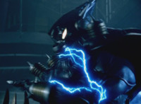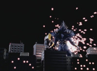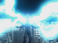 Giganis faces Delta Squad Megazord, which faces him battle ready. Giganis then charges in and sparkily strikes the Megazord, then begins to bash it sparkily a few times, including a head bop. The Megazord staggers back and poses smokily, before Giganis unleashes electricity, spark bursting Delta Squad until an explosion erupts and engulfs it. |