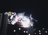 Cuts shot 1 before Megazord starts walking; shot 2 is trimmed; splits final shot. |