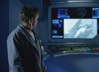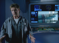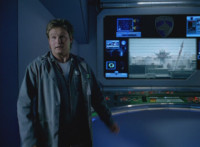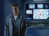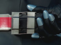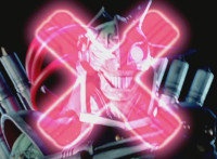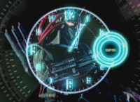 A clockface appears over General Benaag, as Shadow holds his blinking Patrol Morpher forth. Benaag talks a bit, until the Morpher gives the judgement of a red X, which appears over him. |