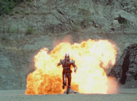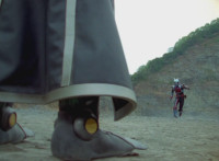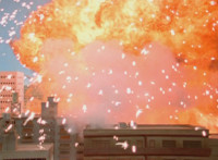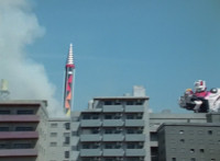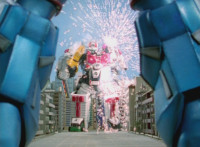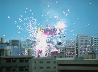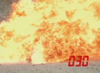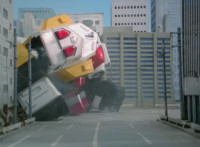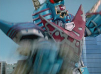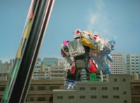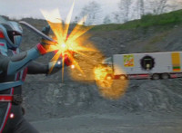 Cuts shot of explosion erupting in front of Megazord between shots 2 & 3. |