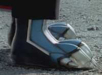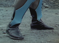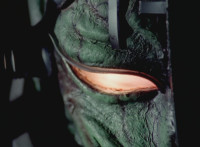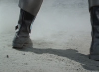 Extreme close-up of General Benaag's eye, then Doggie Cruger's feet coming to a halt. |