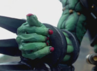 Extreme close-up of General Benaag's gauntlet hand unclenching. |