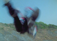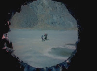 Cuts shot 4 before Shadow refalls; Cuts follow-up of pair facing each other cliffside. |