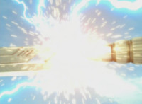 Blue flaring added to cover sparking points for some reason; shot 1 cuts before Benaag writhes and spins about. |