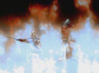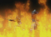 Flames recolored blue; extra shot of Benaag reacting amid flames is cut between shots 2 & 3. |