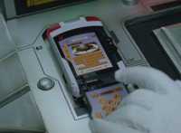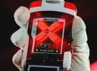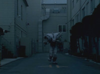 At night, Drakel walks through the streets, his tracker blinking. He stops, gestures arm and talks to himself. |