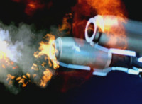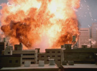Recycled, per source (except shots 4 & 6); cuts shot of barrel gleaming between shots 1 & 2; Shot 3 is given comic panel lines between each cockpit again; cuts follow-ups of more blasting and bursting. |