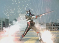 As Shadow remains posed with his Saber, Red collapses onto his back. |