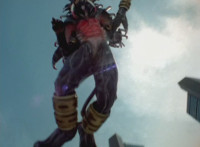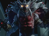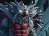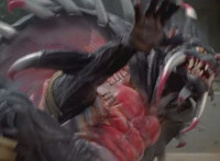 US replaces follow-ups due to Drakel neck-gripping Red, then Red head-kicking Drakel and unloading his Blaster on him at point blank. |