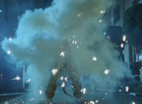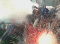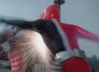 Shot 2 cuts before we can see Red's chest spark bursting; shot 3 is trimmed to reduce visibility of Red spark bursting; cuts follow-up of Drakel. |