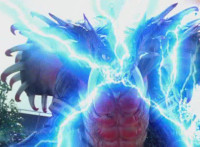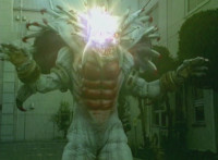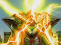 Drakel is struck by the energy blast, causing him to burst, crackle, collapse, and explode massively. |