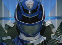 Delta Squad Megazord poses with saber across from Orange Conenose Robot. Zoom in on Blue talking in his cockpit, then on Pink in her cockpit giving an okay handsign then opening her Delta Morpher and typing on it, causing her HUD to scan Orange Conenose Robot, revealing it's being piloted by a Bluehead. Pink talks, each Ranger replies quickly. |