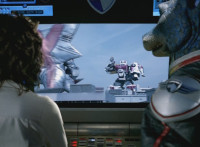 Red nod-talks to his Delta Morpher, then looks to Pink, before shot pans over to Green. |