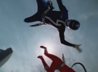 Delta Runner 1 rounds a corner, skidding, as Red talks in the windy cockpit. |