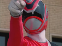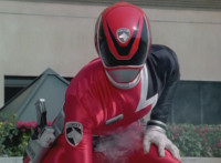 Red nod-talks to his Delta Morpher, then looks, as Drakel fires more eyebeams, smoke bursting the Rangers, knocking them all back down. The team writhes on the ground, Red failing to recover. |