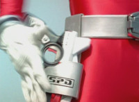 The Canine Cannon is fired forth, the blast shooting down an SPD logo corridor. |