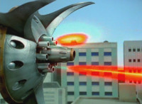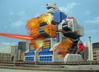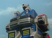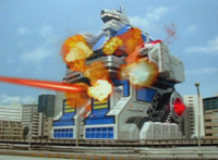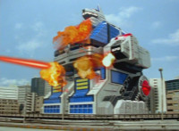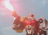 Delta Squad Megazord fires its Blaster into the air. |