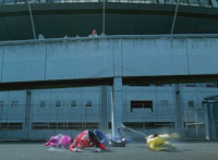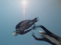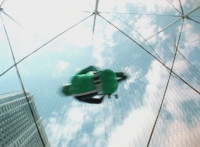 Krybots flip over the camera as the sun shines down. |