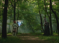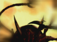 Broodwing is in the forest, Valko approaches, gesturing his arm and talking. He then holds his remote holding arm outward, presses a button, and causes a hologram to display from it, as Broodwing approaches. A quick flashback shows Goradon flailing about in flames. |