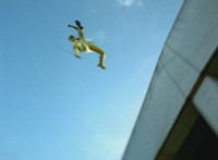 Trims start; cuts follow-up of him firing combined weapon. |