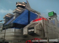 Delta Command Crawler begins rolling forward, Valko reacting, as it drives down the street. The four Rangers each react, Pink talking into her Delta Morpher at the end. |