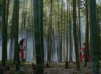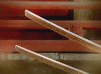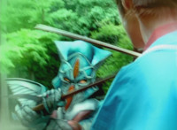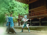 Katana lies injured. A quick exterior of the samurai's abode, Katana meditates beside the Samurai. Soon, Katana and the Samurai practice some swordplay. |
