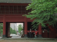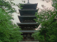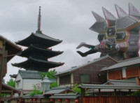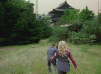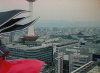 Katana overlooks the modern city of Kyoto, Japan. He then talks to himself. A quick shot of a sign. |