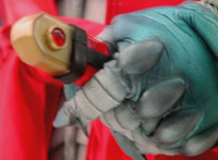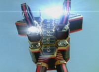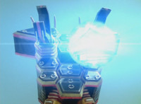 Delta Command Megazord fires lasers from its fingertips forth. |