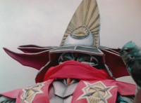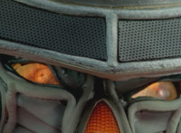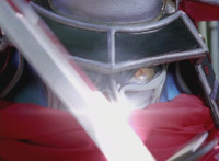 Katana is energy slashed, cutting his headdress in half, falling to the ground smoking. Meanwhile, zoom out from Shadow nod-talking as he and the other four gesturing in the Command cockpit. |