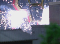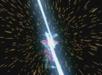 Delta Runner 1 races forth with saber attached to it. Morato opens its center section and fires bolts from its cannons, bursting behind Delta Runner 1. |