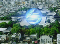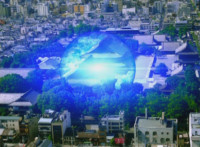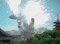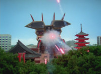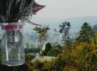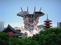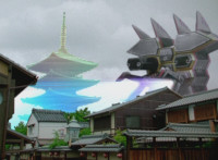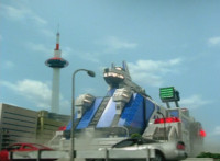Morato, the Giant Robot du jour, drops into the city of Kyoto. |