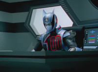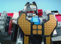 Morato faces Delta Command Megazord, which aims its hand forth and fires yellow police tape around the robot, ensnaring it. Zoom in on the Megazord, as Red nod-talks within. |