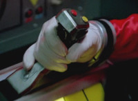 Red steps into frame as he and his fellow Rangers place their Delta Morphers down in the Command cockpit. |