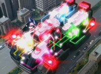 With all five Delta Runners nestled snugly inside the Delta Command Crawler, Runner 1's wheels spinning until electricity crackles, all five Runners' sending Ranger colored energy surging through the Crawler. |