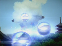 Morato's open claws are blasted, bursting it until all of its stolen building bubbles fly out from within, returning to their proper locations no worse for wear. Meanwhile in the forest, Red raises the gleaming Shadow Saber. Katana stands poised, as both face off without moving an inch. Push in on Red standing there. |