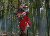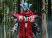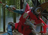 Broodwing hangs upside down watching Morato and Delta Command Megazord from afar. Morato breaks out of its binds, then fires upon the Megazord, spark bursting it. |