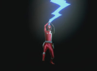 Lightning crashes down onto Katana, who powers up his katana with the energy and slashes downward. |