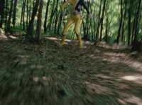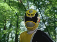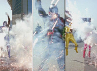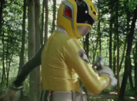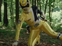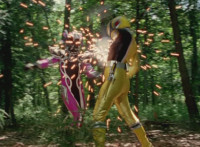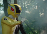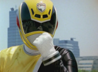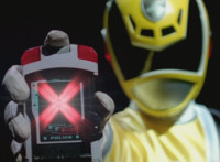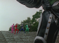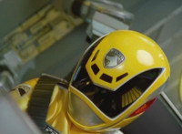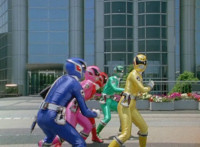 Cuts follow-ups of Yellow in front of other Rangers holding morpher forth and more of the villains. |