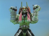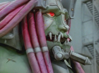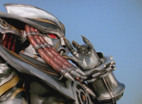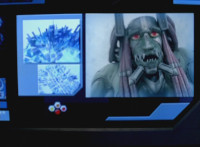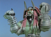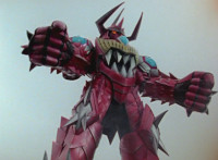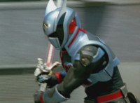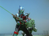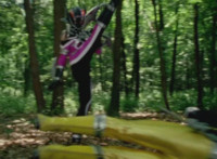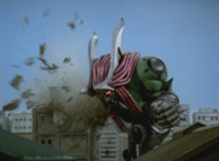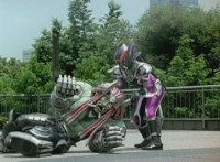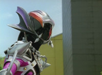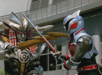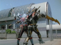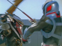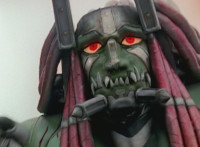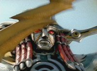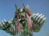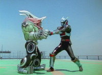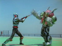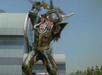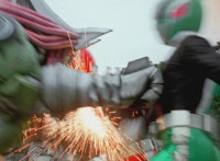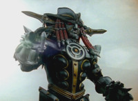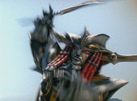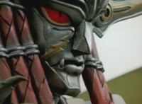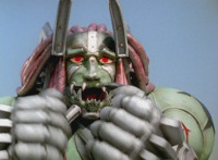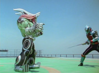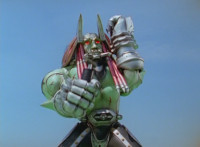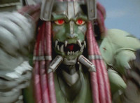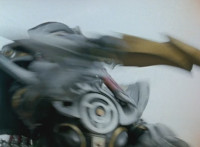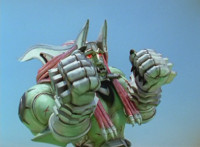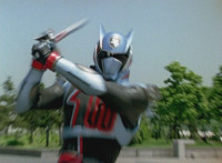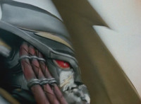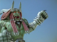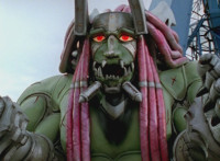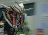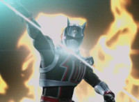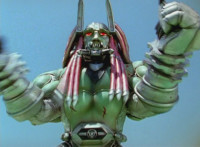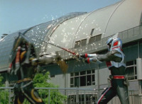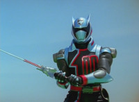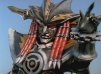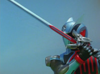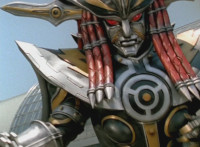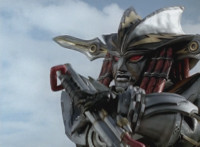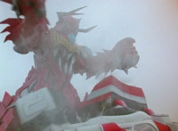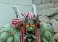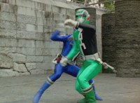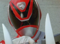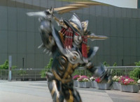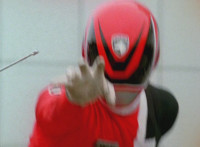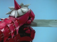 Devastation readies blade and charges at the Rangers, and is able to slash down at Red, when Shadow blocks him with his Saber and speaks. Devastation breaks free, then slashes at him, he spins and dodges. |