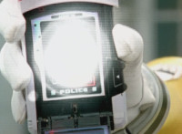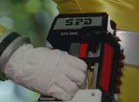 The Canine Cannon is fired forth, the blast shooting down an SPD logo corridor. |
