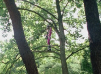 Yellow poses in the forest. |