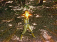 Shorty leaps high, sparkily punching Blue when he lands, missing Red, then kicking Green, Red kicks him uselessly, then Shorty sparkily punches him down. Shadow rolls and recovers, then Devastation sparkily slashes him a few times. |
