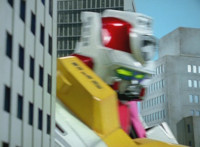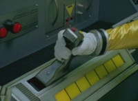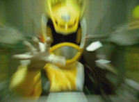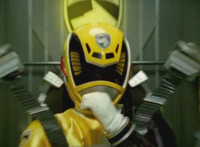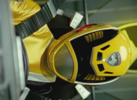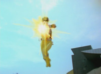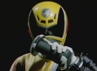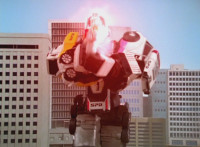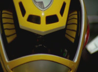 Yellow suddenly turns, grips and shifts her side control, presses down on the pedal, causing the Delta Squad Megazord to turn and begin to rush out from cover, each Rangers' cockpit shaking up as control is taken away from them by Yellow, who targets the silver tower, talks, then fires the Blaster forth, bursting it and the Robot of Destruction, but not damaging either. |