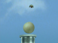 Shorty bounces up onto a building, then into the sky. |