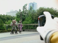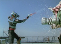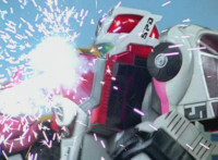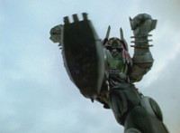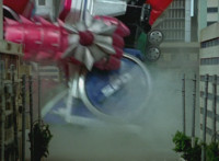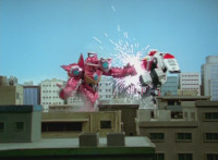 Cuts follow-ups of RoD firing on the Megazord, which side-dives and fires back. |