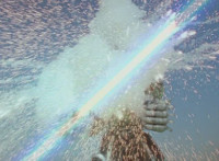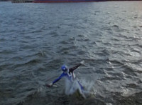 Yellow & Pink roll away. Shorty taunts them when they begin to recover. Blue suddenly leaps out of the water, Shorty reacting. |