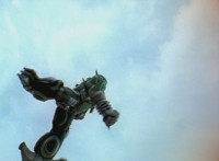 Robot of Destruction walks away from the tower. |